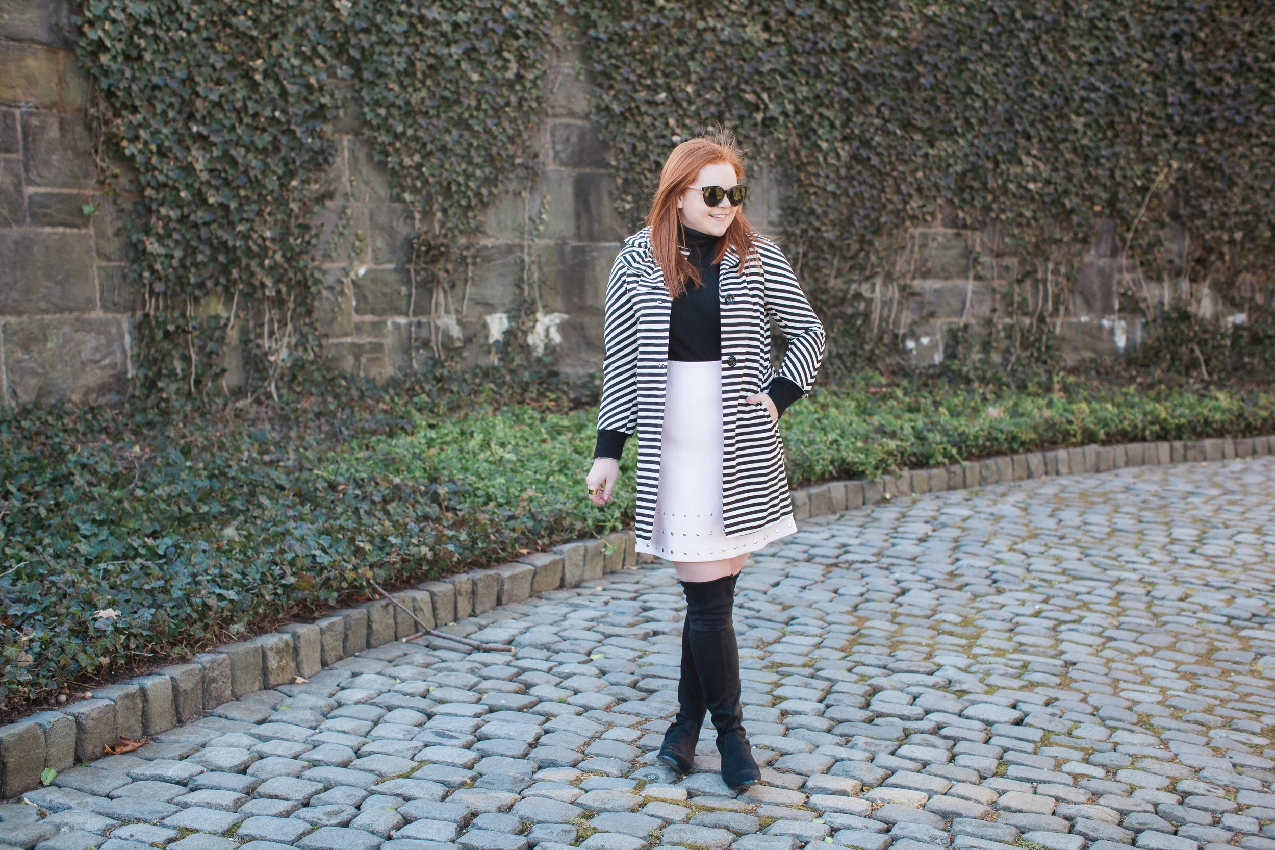 now i think we can all tell i'm a little obsessed with black and white coats but i will never stop wearing them! at least until they go out of style but we know that's never going to happen. i threw on my favorite otk boots and was ready to hike up to the cloisters!