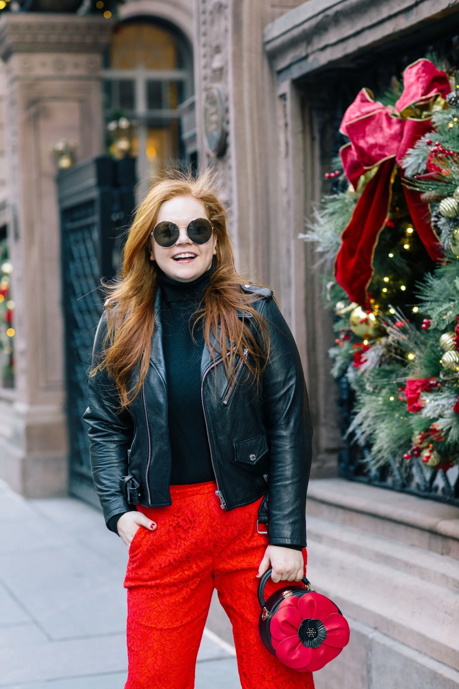 5 more days!! eek! and i couldn't be more obsessed with these red lace pants! don't worry, i also got them in black too! these pants are the perfect alternative to any dress/skirt for the holidays and are optimal for large meals because of the elastic waist in the back...bring on all the peppermint brownies! just add a cozy sweater and a moto jacket and you can out-style all of your relatives without looking like you're trying too hard.